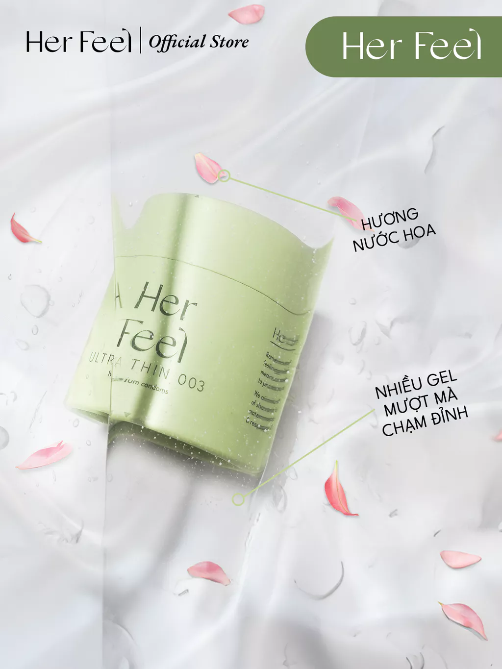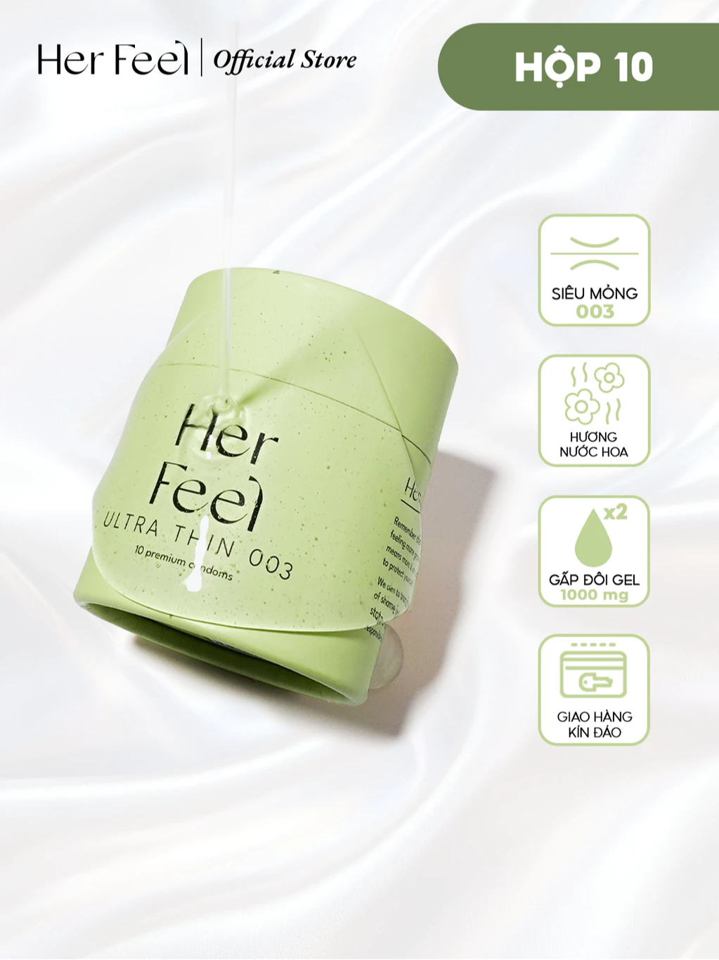Bao cao su (bcs) PlayAh Her Feel Ultra Thin 003 - bao cao su siêu mỏng 003 thêm 1000mg gel giúp tăng khoái cảm khiến cuộc yêu thêm nồng cháy nhưng vẫn đảm bảo an toàn tuyệt đối. Hơn nữa, BCS có mùi hương nước hoa mang cảm giác tươi mát, ngọt ngào & bổ sung gel bôi trơn để cuộc vui thêm trọn vẹn.