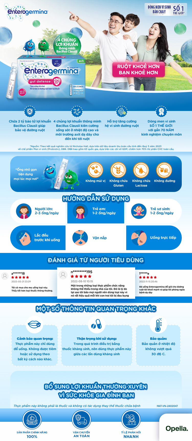 Enterogermina gut defense 2 tỷ bào tử/5ml Opella