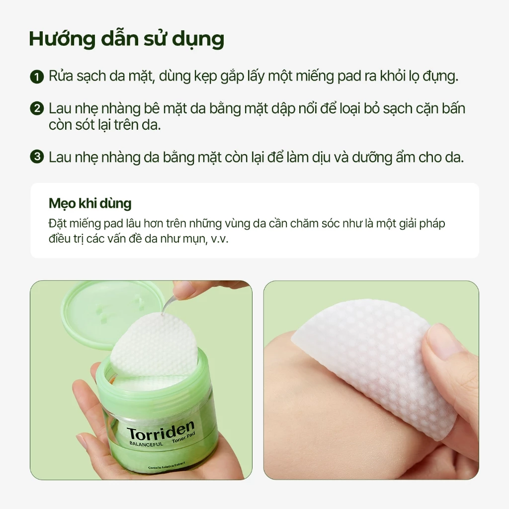 Bước 2: Dùng mặt bông của sản phẩm lau lại nhẹ nhàng trên da giúp cân bằng và cấp ẩm.
