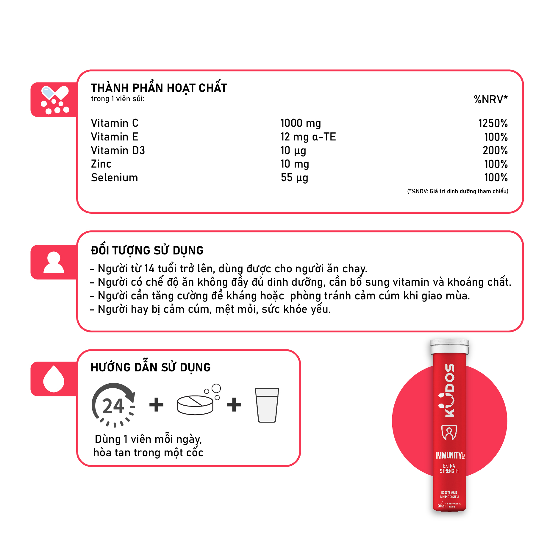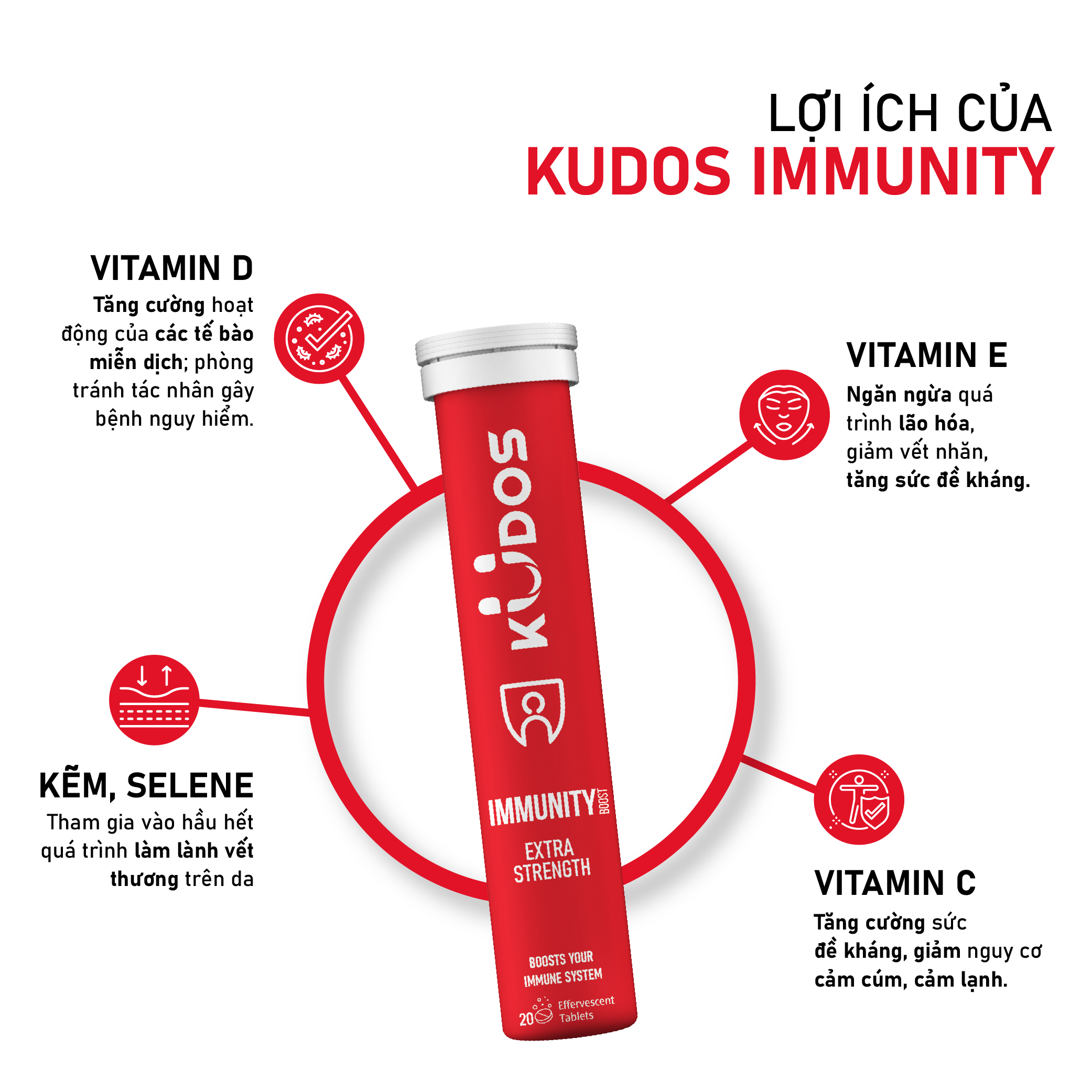 Công thức vượt trội gồm các vitamin và khoáng chất, là lá chắn để kháng vững vàng cho cơ thể: