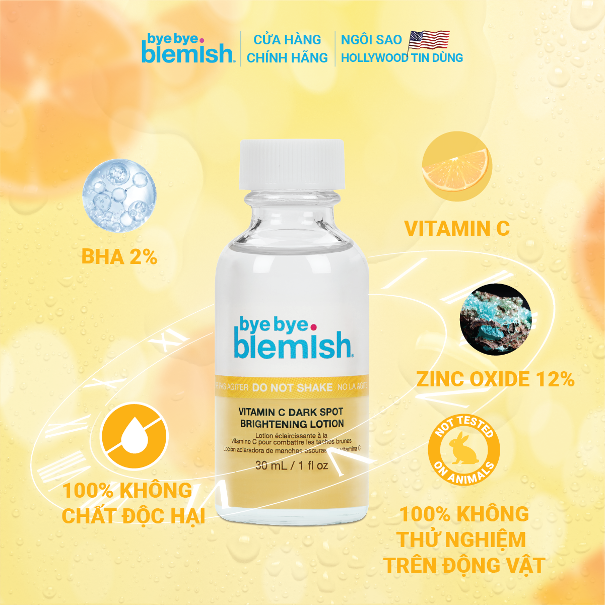 Công thức giúp cải thiện tình trạng giảm mụn của Bye Bye Blemish là từ Acid Salicylic (hay còn gọi là BHA) với nồng độ là 2%, kết hợp với Zinc Oxide 10% (Kẽm). Cho phép làm khô cồi mụn hoàn toàn tự nhiên, thấm sâu và lỗ chân lông để giúp cải thiện tình trạng và làm dịu da.